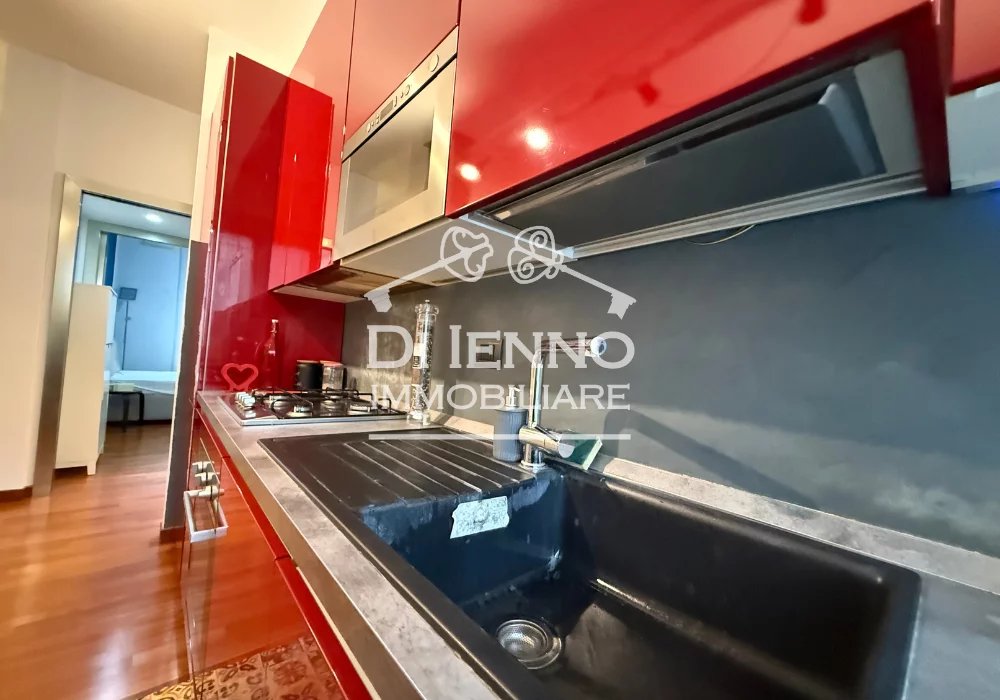 -Luminoso salone con angolo cottura servito di microonde, forno e lavastoviglie